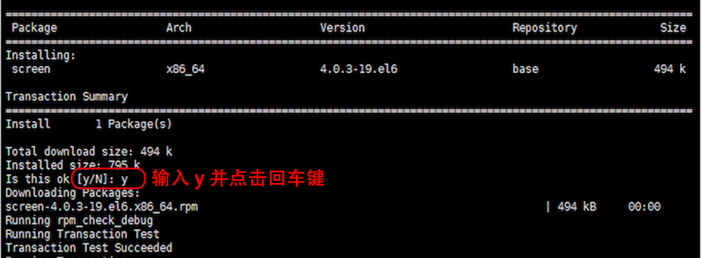 安装 screen 的中途需要你输入 y 进行确认