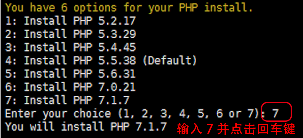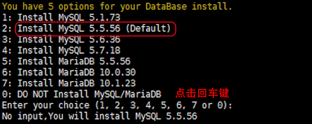 MySQL 选择 5.5.56 版本即可,点击回车键将自动选择 MySQL5.5.56