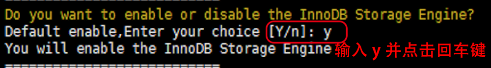 输入字母 y 并点击回车键,启用MySQL InnoDB