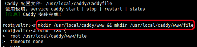 mkdir /usr/local/caddy/www && mkdir /usr/local/caddy/www/file