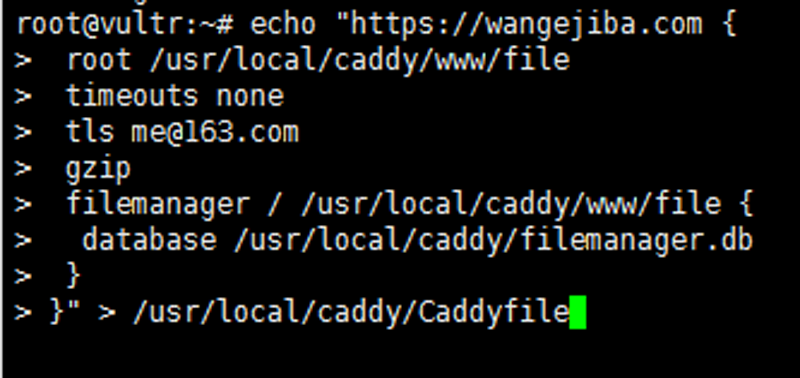 如果你有多个域名,都想绑定到这个私有网盘上,可以执行以下代码。(和上面代码的区别在于最后一行,一个是 >,一个是>>)
