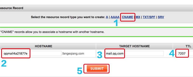 点击 CNAME,按照图要求填写。(图片是例子,填写时把图片中的信息替换为自己的)