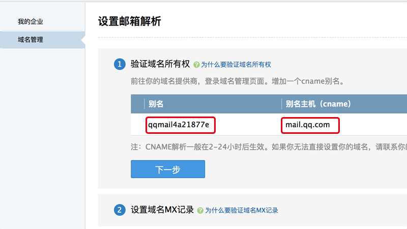填写完毕的样子如图,这时等待域名验证即可,一般2个小时左右。
