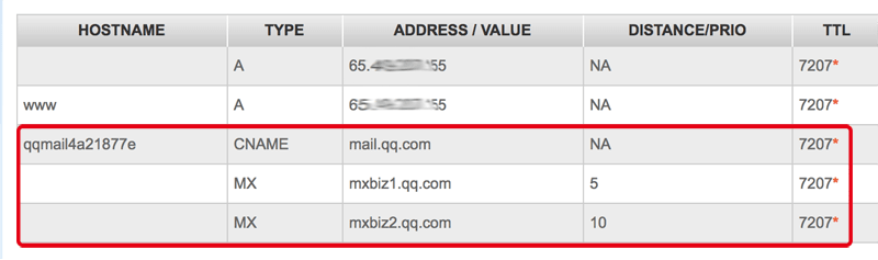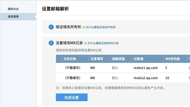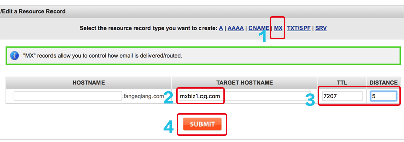 点击 MX,按照图片要求填写。图片是例子,填写时把图片中的信息替换为自己的)