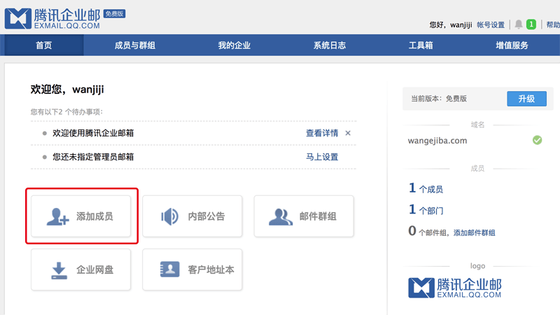 说小号不严谨,其实是指你可以创建多个邮箱。在某些场景下,你可能需要多个邮箱去注册账号,一旦你注册了腾讯企业邮箱,就拥有了50个邮箱的创建权限,比如创建 123@wangejiba.com、abc@wangejiba.com。