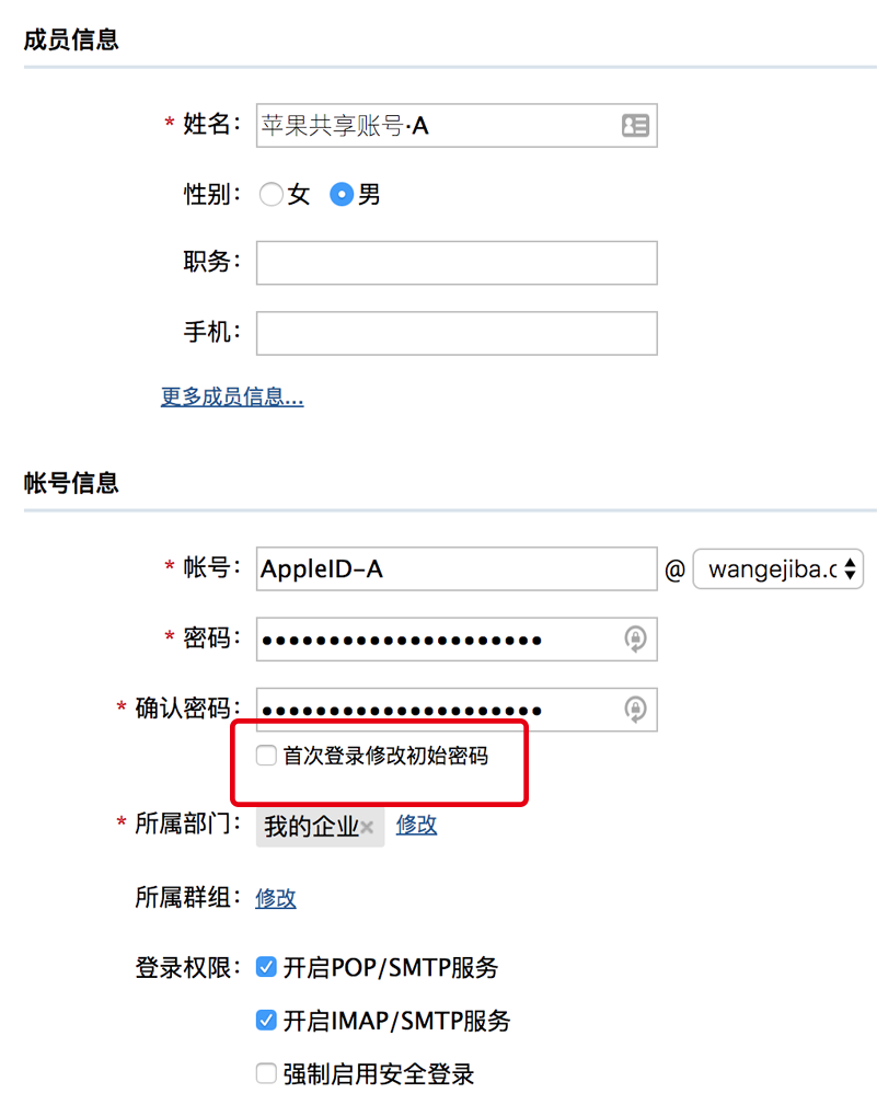 按照要求填写即可,如果是自己使用,可以去掉重设密码的选项,否则登陆创建好的邮箱时,还要改一次密码。