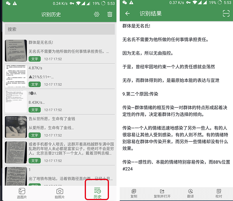 历史记录是一个非常方便的功能,在需要时可以随时找到以前识别的内容。
