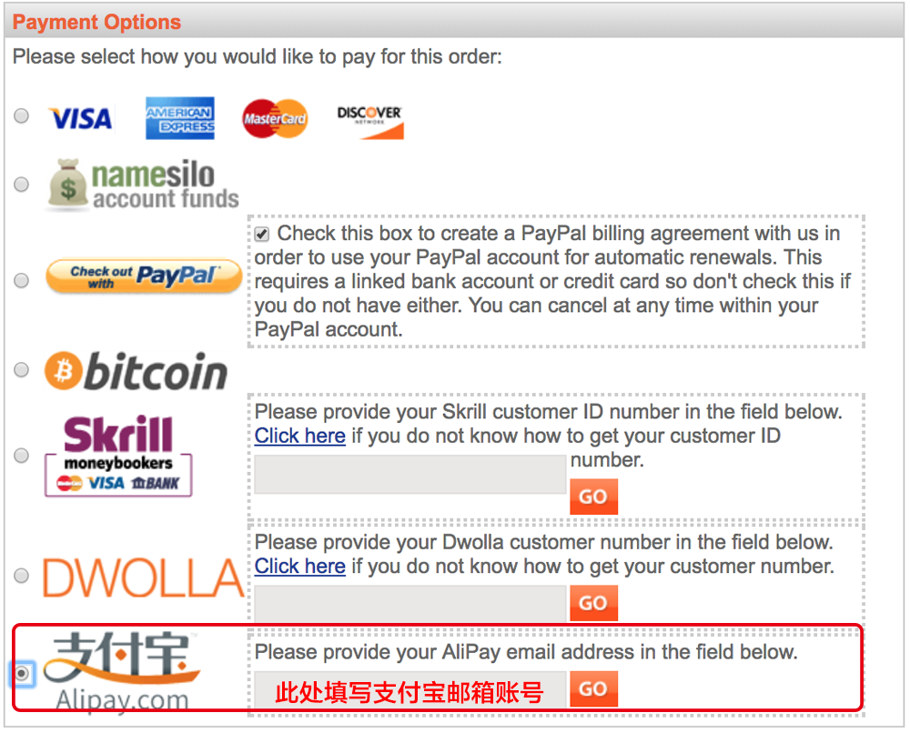 根据图片示例填写即可。其中要注意两点,『是否需要』选择『是』则会在域名到期前自动续费(支付宝貌似不会自动续费),如果选择否,并在域名到期前未续费,该域名将会被释放,其他人可以自由注册购买。