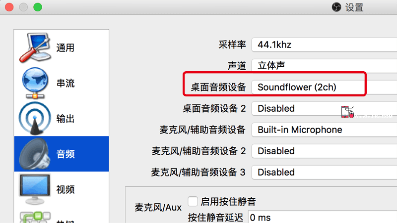 而在 Mac 上,如果要内录或内外同录需要安装另一个录制工具 Screenflow[下载],音频选择 Soundflower 2ch