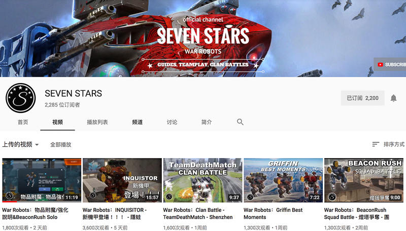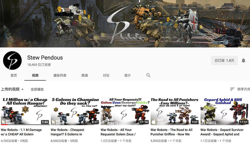 2.2千 订阅者,华人玩家,会有一些新机甲与测试服的体验视频,因为采用中文解说与中文字幕,可能更适合大陆玩家?
