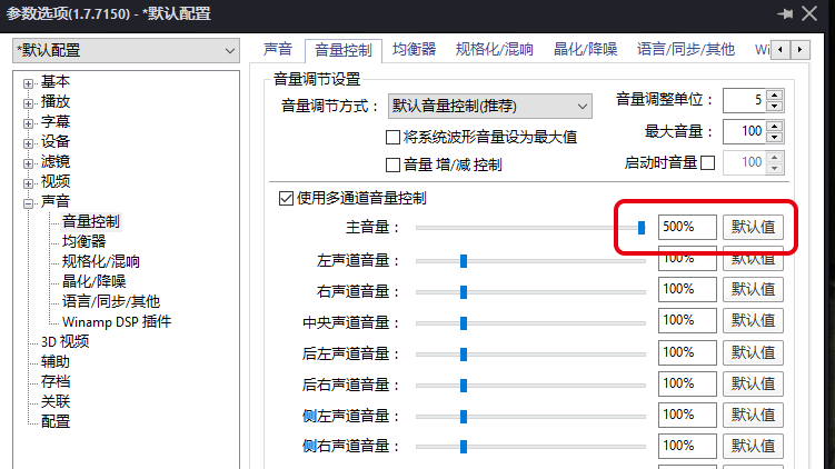 5.音频最高可 500%,视频声音小?PotPlayer可以为你放大5倍.
