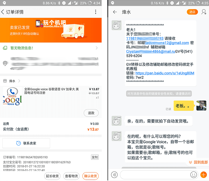 卖家不错,询问了很多使用问题都一一耐心解答了,推荐一下吧,购买 Google Voice 会收到一个谷歌账号和密码,你购买的 Google Voice 手机号就绑定在这个谷歌账号上。