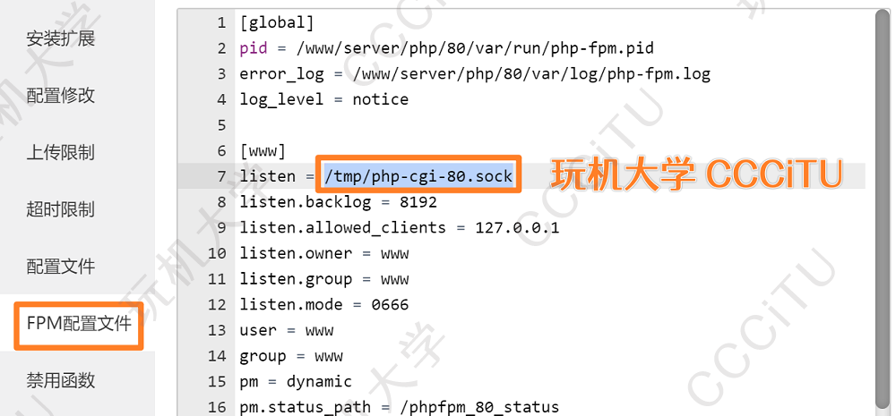 - ⭕第21行的/tmp/php8.sock修改为自己服务器 PHP 的连接配置,在此文 4.1部分已演示如何找;