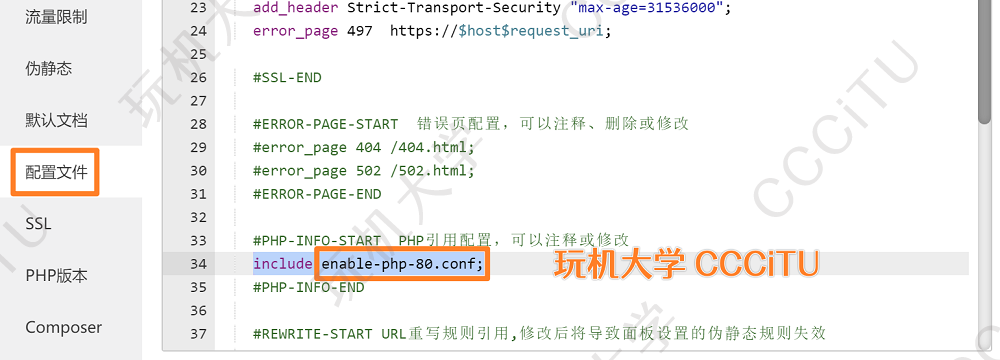- ⭕第23行的enable-php-80.conf修改为自己服务器 PHP 的 conf 文件位置,在此文 4.1部分已演示如何找;