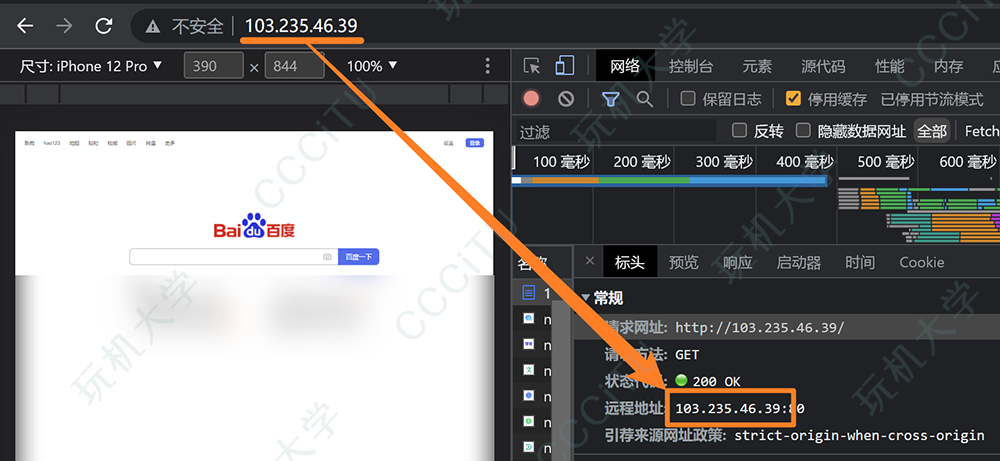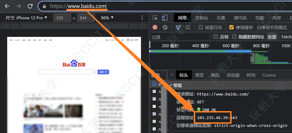 通俗来讲,当你在 Chrome 浏览器 打开百度搜索 www.baidu.com 这个网址(张三)时,从 浏览器控制台 可以看出,你真正打开的是该网址对应的 103.235.46.39 这个 IP 地址(手机号),IP 地址如此复杂很难记忆,于是就有了DNS(通讯录)负责在浏览器后台自动将网址转换成IP。