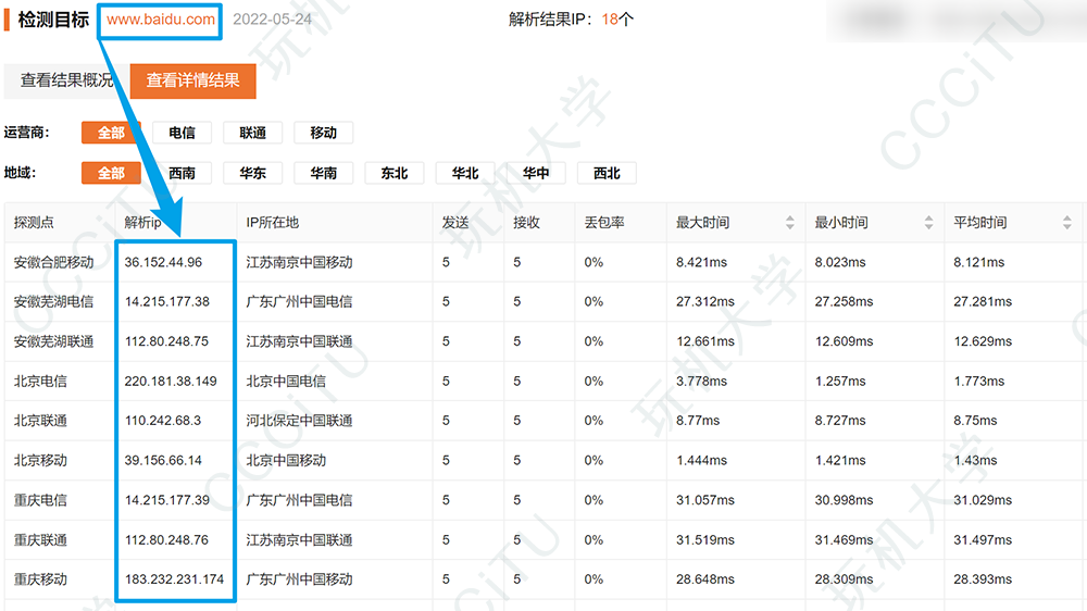 当然。就像张三可以有多个手机号码,一个网址也可以绑定多个 IP 地址。我们 ping 一下 www.baidu.com 从结果中可以看到,不同的地区访问百度搜索时,解析到的 IP 地址有很多变化。