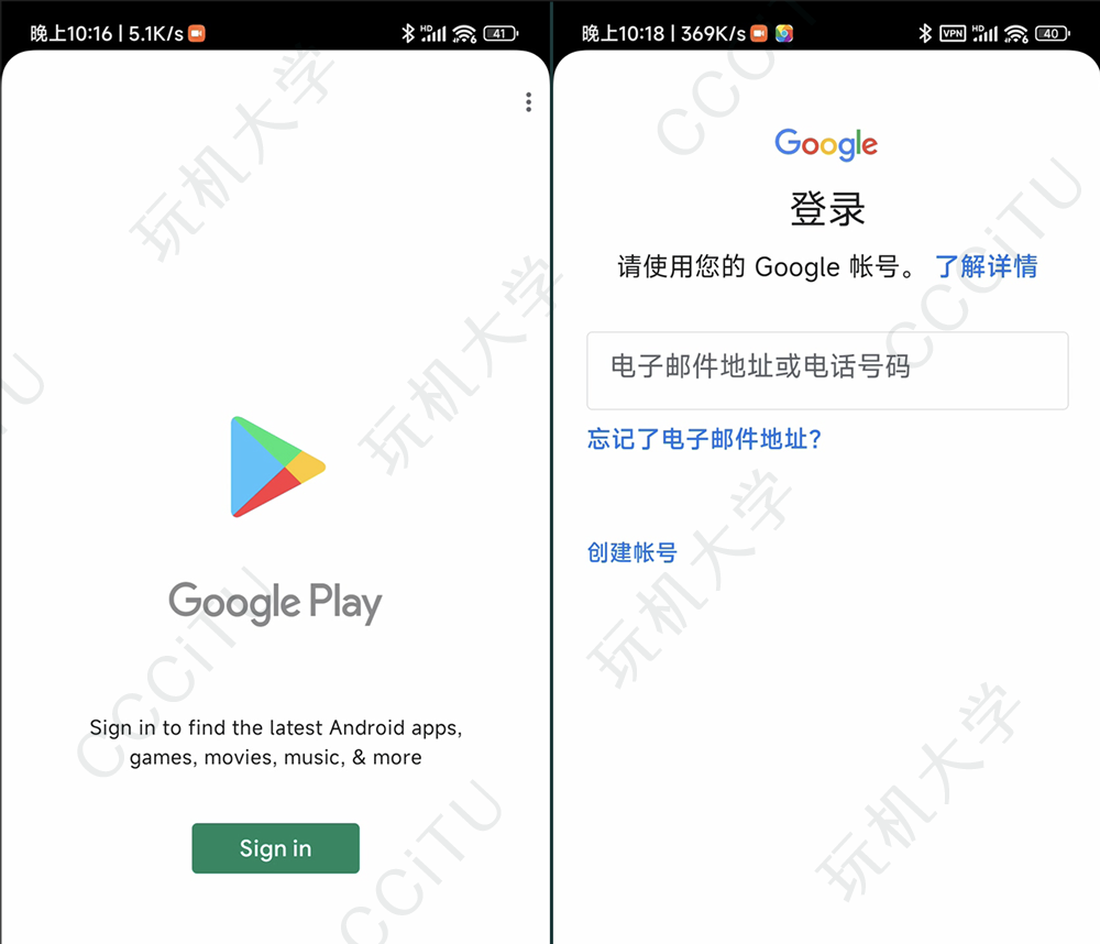 👆回到 Google Play 启动页,点击Sign in登录谷歌账号。没有账号可根据提示创建,如创建失败请参考《如何注册 Google 谷歌账号,避免中国手机号无法验证》