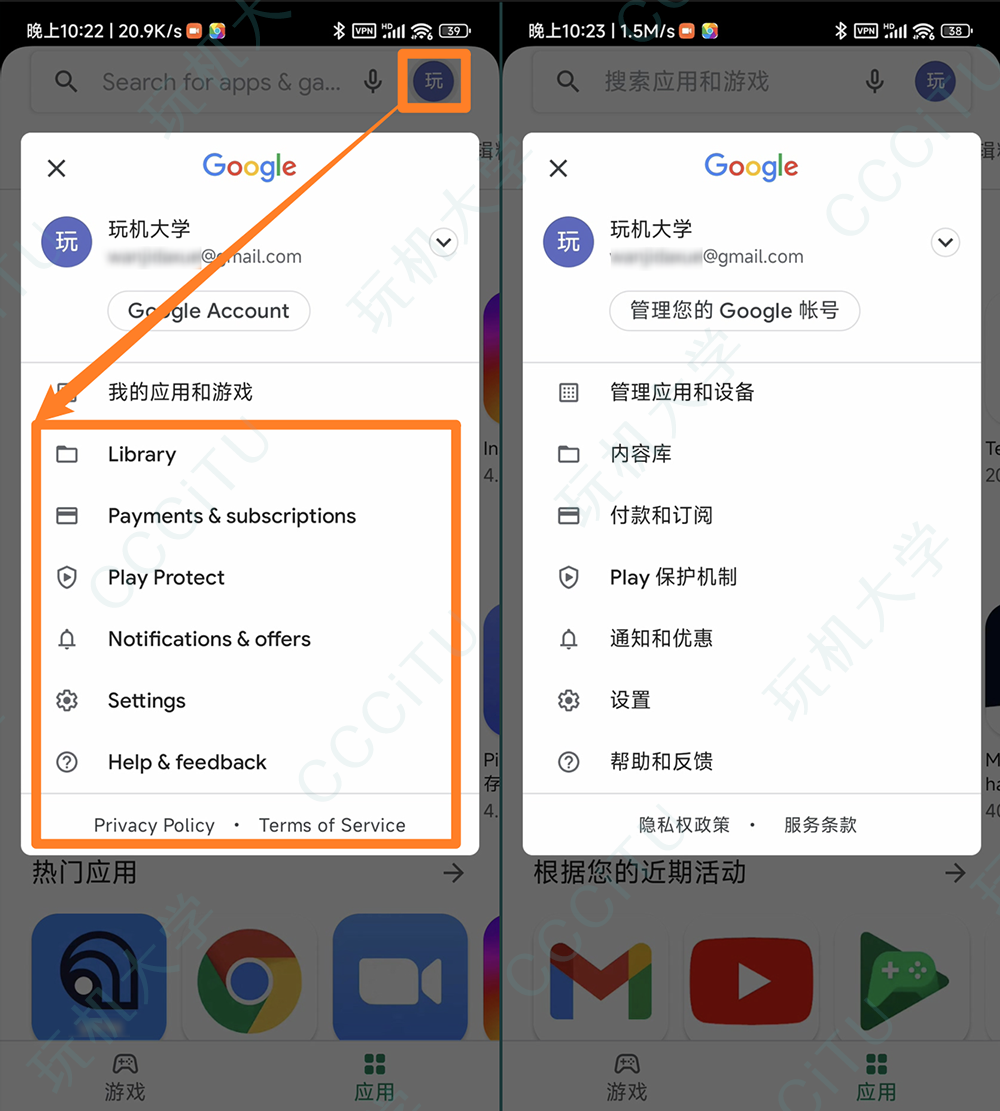 👆点击右上角,如果你的谷歌商店也是未汉化完全,可以安装最新版本,传送《Google Plya》