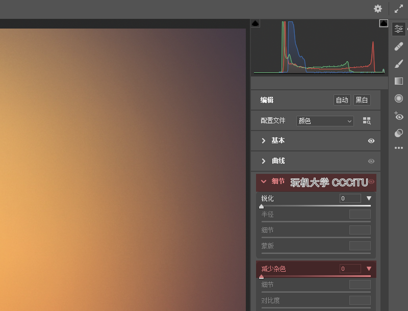 PS 如何降噪提高图片的清晰度 Mac Windows编辑于:2023年02月13日 分享 光线不足且IOS感光度较高时,拍摄的照片可能会有较多的噪点。通过 Adobe Photoshop 可以消除部分噪点,使画面更加干净。 操作步骤 使用 PS 打开照片→滤镜→ Camera Raw 滤镜 细节→减少杂色→根据需要调整降噪力度。 文章来源: PS 如何降噪提高图片的清晰度 标签:Photoshop · PS 生成海报 点赞 0 分享