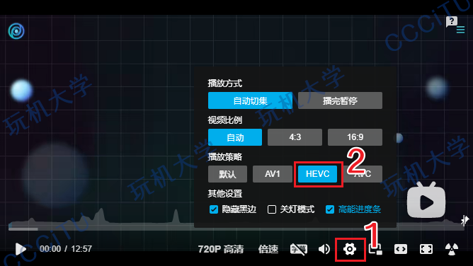 在B站找个4K视频BV1qM4y1w716,在播放设置里选择HEVC,然后刷新一下页面(不刷新可能不会马上切换)