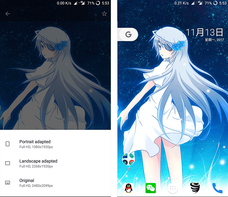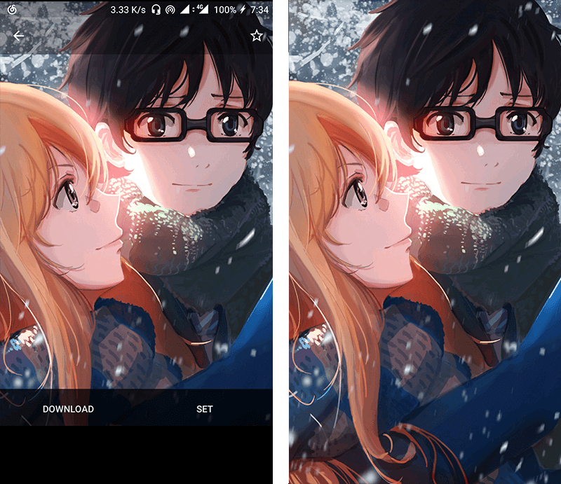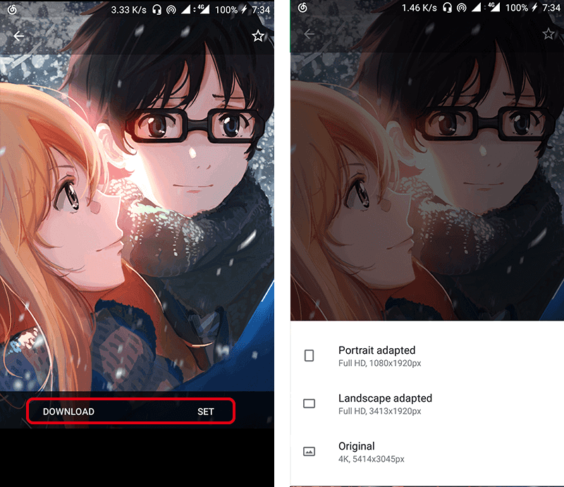 点击 SET ,可以选择想要的分辨率,之后会自动设置为壁纸。如果你很喜欢这个图片但是不想做壁纸,可以点击 Download 保存到手机图库。