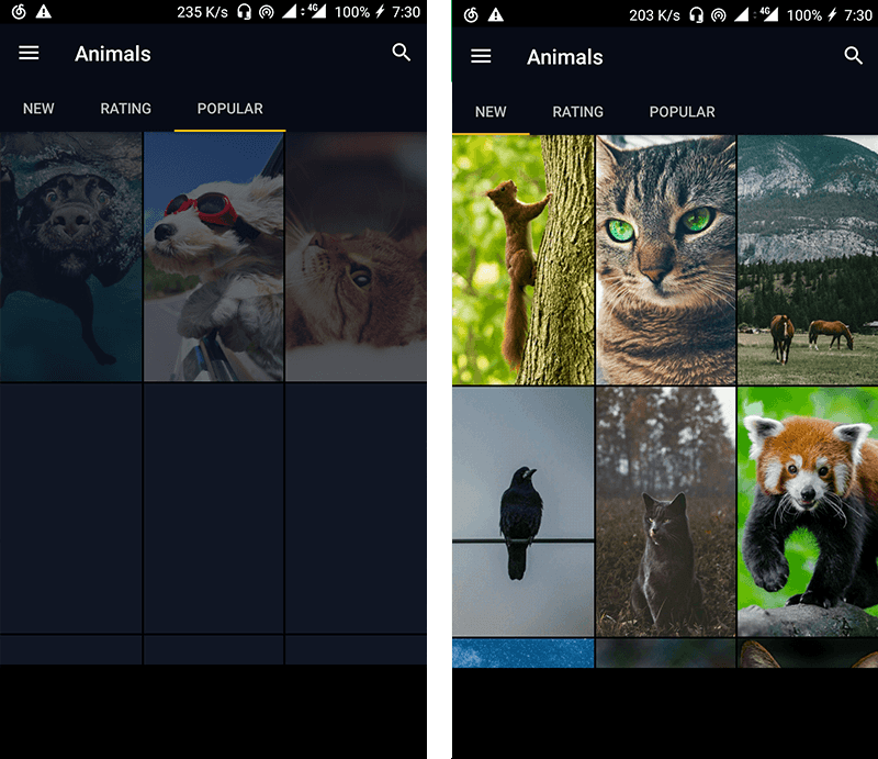 除了提供搜索功能,你可以点选已有的分类:抽象、动物、动漫或者姑娘,几十个分类方便快速找到心仪的内容。