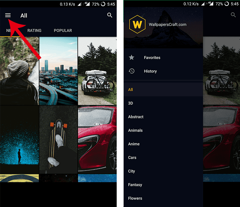 点击左上角三道杠的菜单按钮,可以选择你感兴趣的分类。