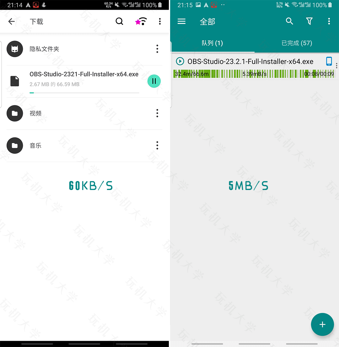 如上图所示,从浏览器下载 60KB/S 而 ADM Pro 则有 5MB/S 相差 85 倍。
