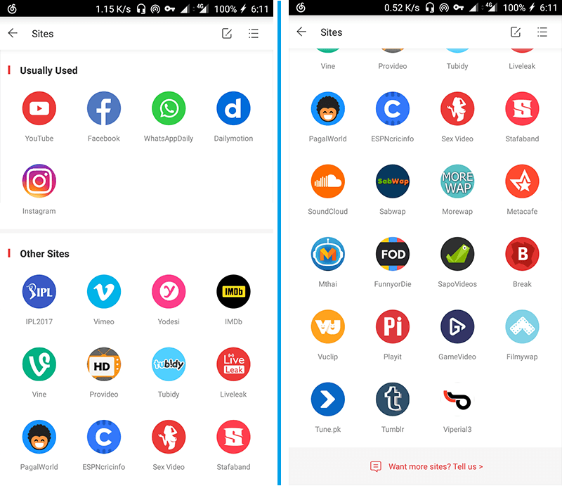 VidMate 是一款非常著名的视频下载工具,主要针对海外视频网站,支持的网站数量非常多,比如常见的YouTube、汤不热、脸书等网站。