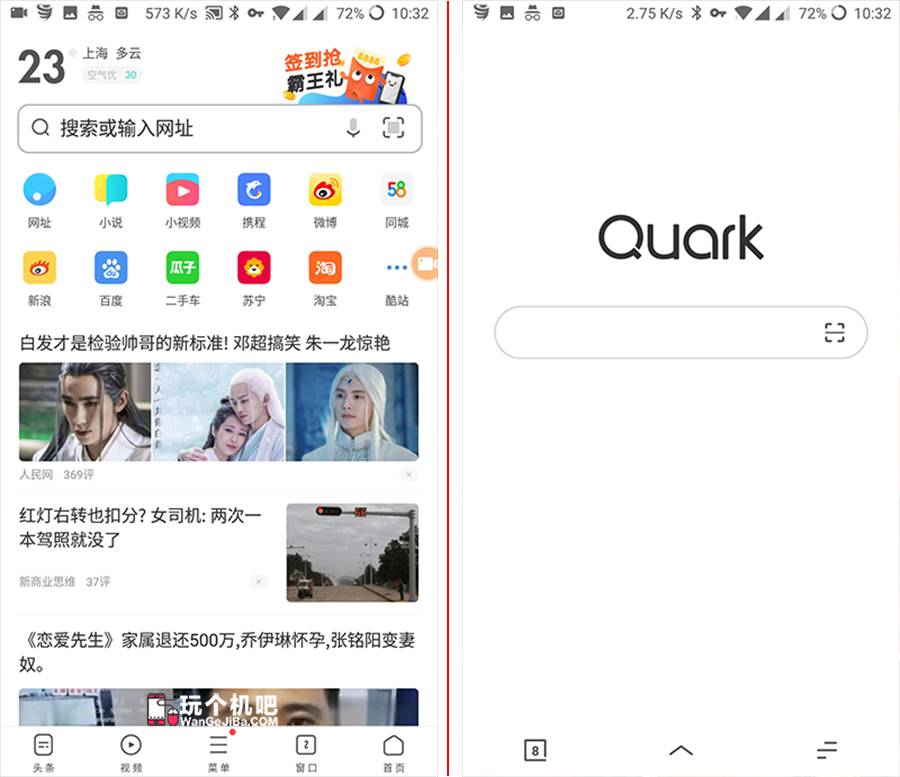 夸克与UC浏览器,同为UC团队打造,风格差异非常大。当今几乎所有的浏览器,都在走信息流式新闻发布平台路线,夸克却依然保持一定的克制,首页非常干净整洁。(搜索框下自带的几个站点图标可长按后删除)