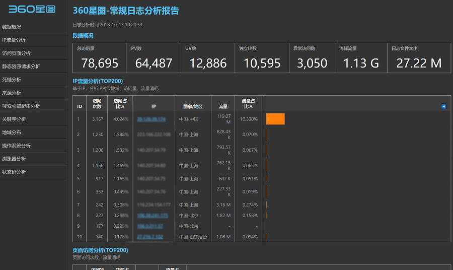 如何分析网站日志?如何通过日志了解到网站的访问、安全和运行状态?面对超大体积和内容繁多的日志,你需要一个自动分析工具:360星图。