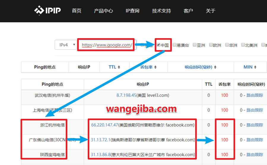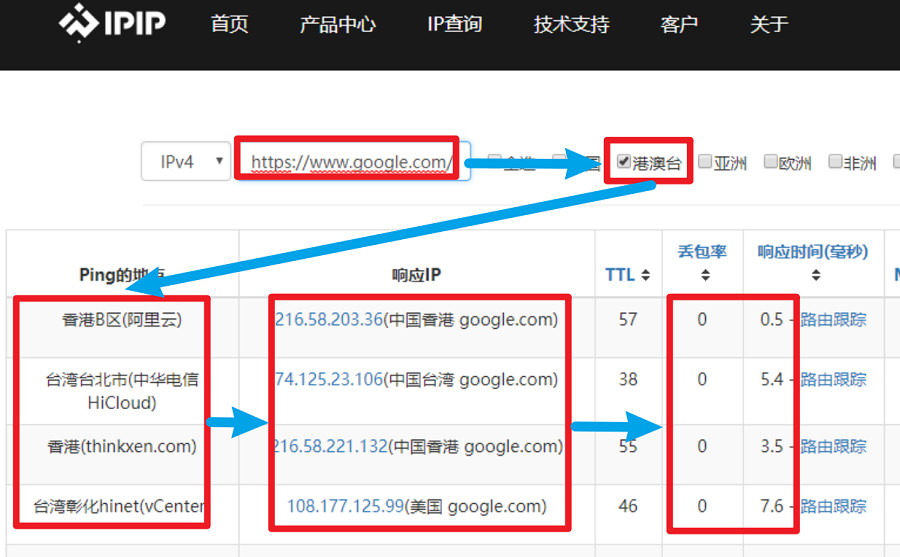 2.2.Ping查询:https://tools.ipip.net/ping.php
