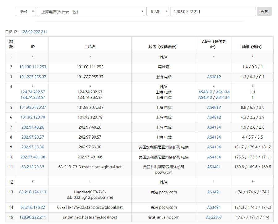 如上图所示,这是一个中国上海电信访问某香港服务器IP,却绕道美国洛杉矶