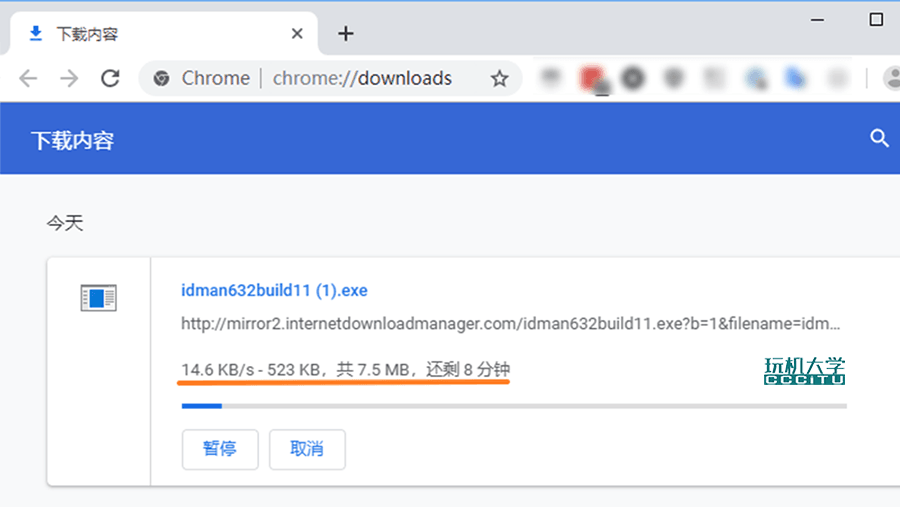 我们以从IDM官网下载IDM安装包为例,因为IDM官网在海外,速度非常慢,使用chrome下载每秒只有20KB左右。