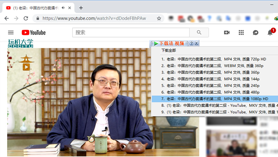 设置完毕,在点击悬浮的下载按钮,选择需要的分辨率下载(YouTube一般提供多种分辨率)