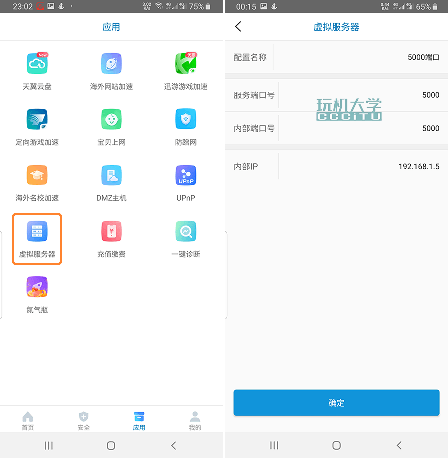 端口转发功能,在一些光猫或路由器上也叫虚拟服务器,虽然叫法不一样但说得是同一个功能。打开光猫APP,找到虚拟服务器选项,填写以下信息并保存。