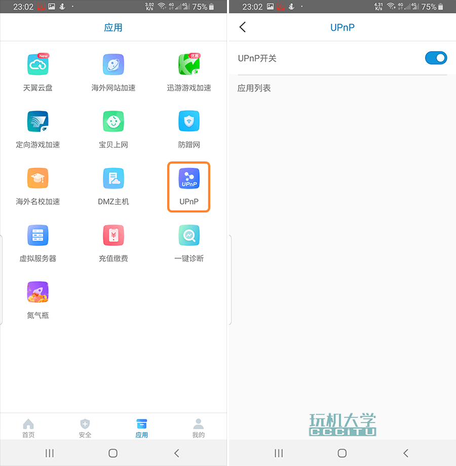 打开光猫APP,选择应用,找到UPnP选择开启。