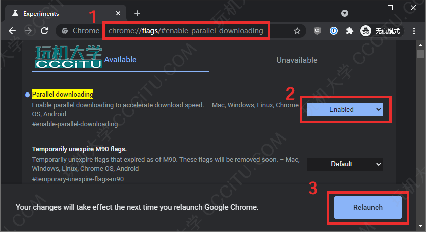 复制 chrome://flags/#enable-parallel-downloading