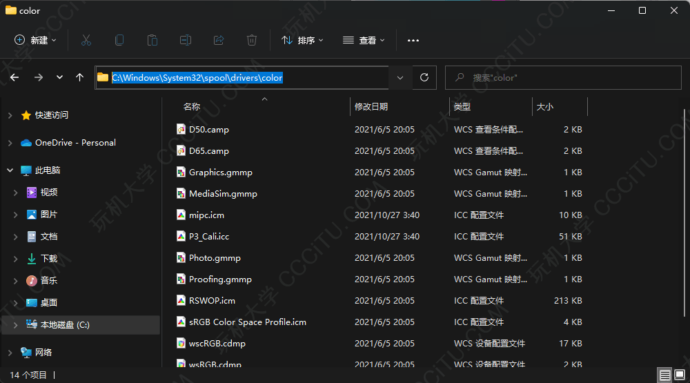Windows 的色彩配置文件/校色文件存在什么文件夹,文件夹的目录地址是什么?如上图所示:C:\Windows\System32\spool\drivers\color