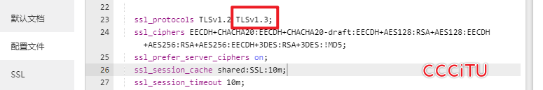 这里额外提一句 HTTPS 的 TLSv1.3 协议(更快速、更安全、更有效率),在宝塔编译安装的 Nginx(版本 ≥ 1.13.0) 已经默认开启了,如果你在 https://myssl.com/ 检测,发现你的网站并不支持 LSv1.3 ,不要担心,去检测一下同服务器是否还有其它网站没有部署证书并开启 TLS1.3?