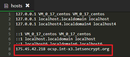 🚩注意!目前 Let's Encrypt 证书 OCSP 服务器验证地址已更新,且已在国内有相应节点已无 DNS 污染问题,因此不需要再按照上述步骤自定义 Hosts 文件。