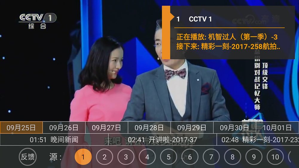 点击屏幕左侧,可以看到央视、卫视及地方直播;体育、电影等特色频道;如果你愿意折腾,可以自己添加节目源,收看其他国家地区的电视直播。
