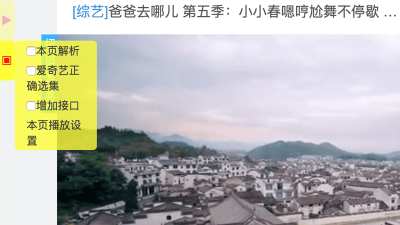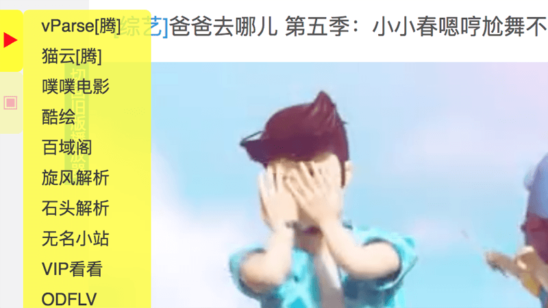 脚本安装完毕,打开视频网站,在网页的左侧会有两个黄色的小按钮,一个三角型、一个正方形。打开你要播放的视频,点击页面左侧的小三角,浏览器会打开新页面,并跳过片头广告开始播放。
