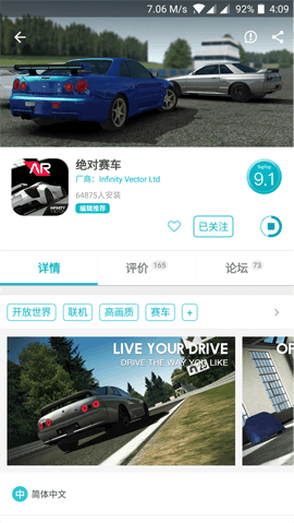 打开 TapTap 搜索 绝对赛车 下载安装即可,文件大约150MB。