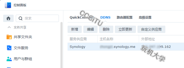 群晖 NAS 内置的 DDNS服务获取的公网 IP 是错误的,分析后确认获取的 IP 是路由器上代理工具的海外节点。知道原因就好办了,我们只需将与群晖 DDNS 相关的域名放到直连白名单中。